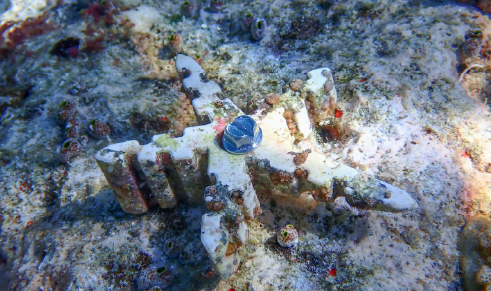 Reef Stars are star-shaped metal frames placed on the ocean floor. Coral fragments are attached to them and grow over time. This method is particularly suited for reefs that have lost structural complexity after significant disturbances, like cyclones, as it provides essential habitat for fish in marine environments characterized by sand or unstable rubble.