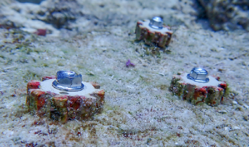 Coralclip® devices are used to attach coral fragments directly to natural reef surfaces. This method is more indicated in site with hard substrata.